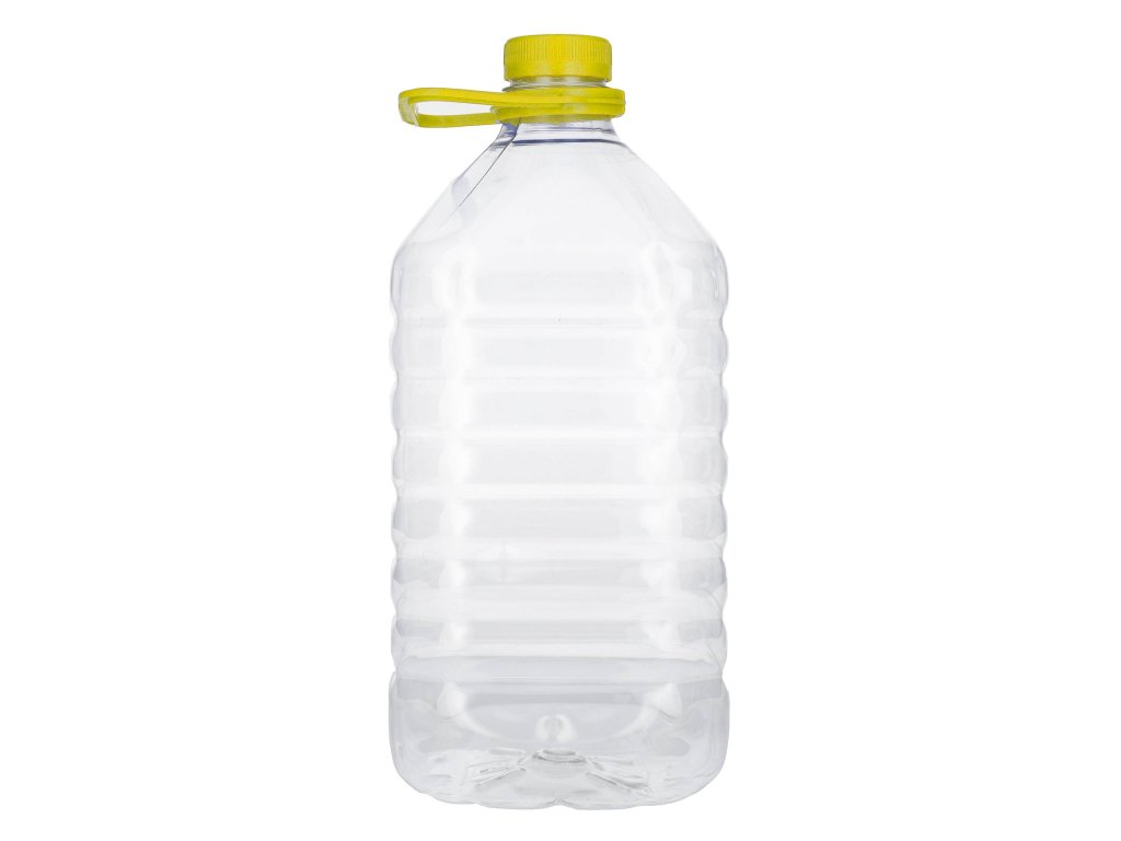 PET kanystr pro univerzální použití v čiré variantě. Hrdlo 48 mm. Cena zahrnuje uzávěry a držáky ve žluté barvě.